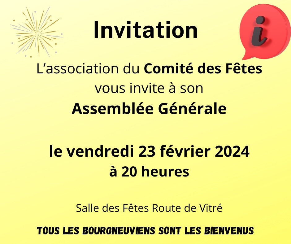 AG Comité des Fêtes 11 Fév. 2024|Agenda, Association| Partagez cet article, Choisissez votre Plateforme! FacebookXRedditLinkedInWhatsAppTumblrPinterestVkXingEmail