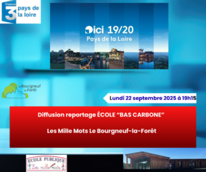Diffusion reportage École “Bas carbone” Les Mille Mots Le Bourgneuf-la-Forêt 19 Sep. 2025| Partagez cet article, Choisissez votre Plateforme! FacebookXRedditLinkedInWhatsAppTumblrPinterestVkXingEmail
