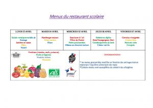 Menus du 03 au 07 Avril 2023