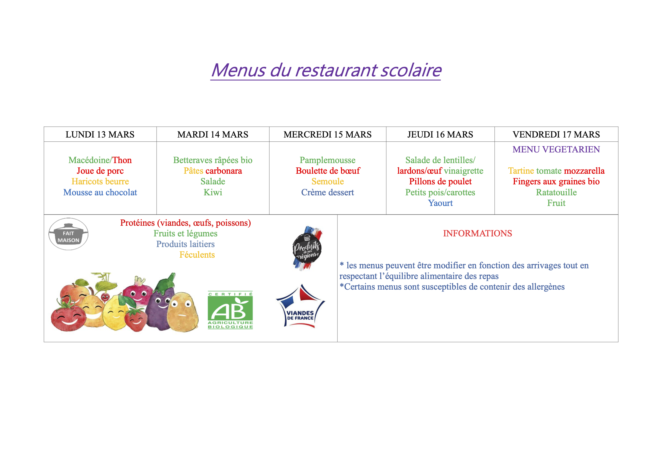 menus du 13 au 17 mars