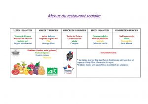 Menus du 16 au 21 Janvier 2023