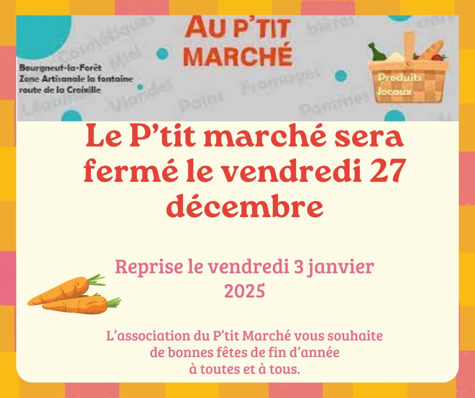 P’tit marché 21 Déc. 2024|Association| Partagez cet article, Choisissez votre Plateforme! FacebookXRedditLinkedInWhatsAppTumblrPinterestVkXingEmail